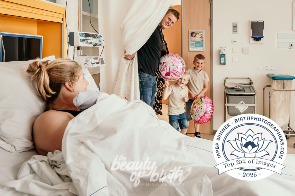 Ook het werk van Marjolein Loppies kreeg internationale lof. Over haar zwart-witfoto schreef de jury: “De compositie en het lijnenspel zijn uitzonderlijk. De blik van de vader vertelt het verhaal, iets wat we zelden op deze manier zien in geboortefotografie.”